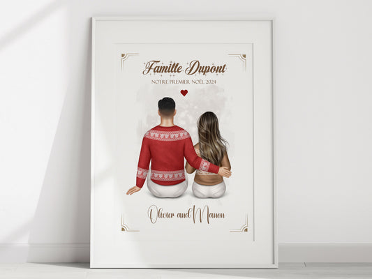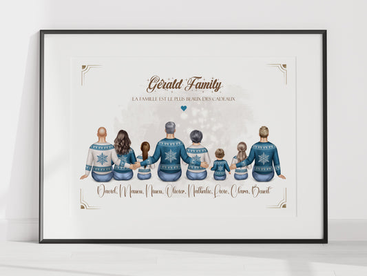 Affiche Personnalisée Famille Noël - Créez Votre Portrait de Famille Unique pour Noël - 3 à 8 personnes