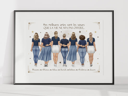 Affiche Personnalisée Meilleures Amies - Créez Votre Illustration de Groupe (4 à 7 Amies)