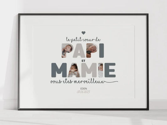Affiche "Papi et Mamie" avec votre mot-photo personnalisé – Le cadeau idéal pour la fête des grands-parents