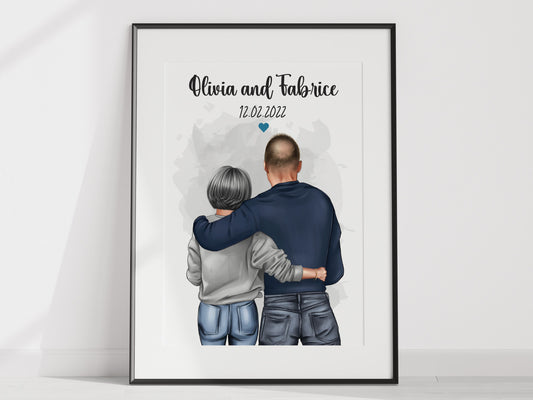 Affiche Couple Personnages de Dos - Cadeau Personnalisé pour un Couple
