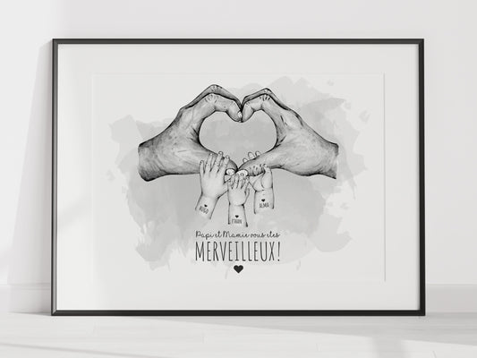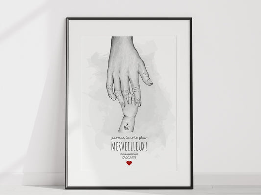 Affiche Minimaliste "Main d'Homme et Enfants" - De 1 à 5 Enfants