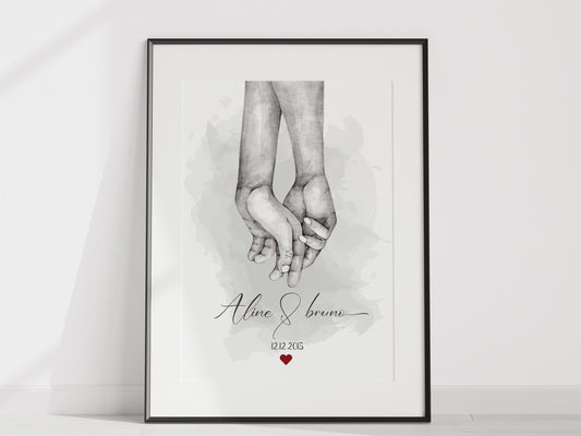 Affiche Couple Personnalisée – 2 Mains Enlacées