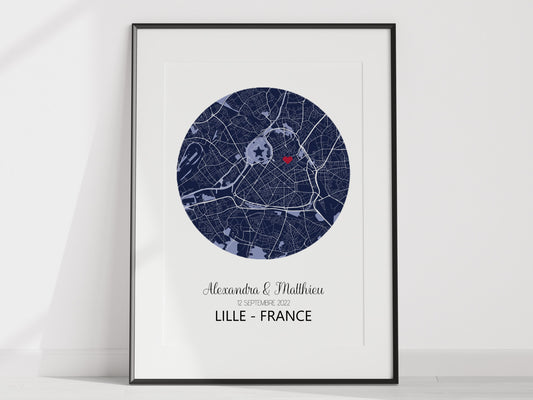 Affiche Couple "Là où Tout a Commencé" – Cadeau Personnalisé de Lieu de Rencontre
