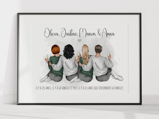 Affiche Meilleures Amies Personnalisée – Jusqu'à 4 Amies