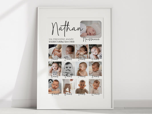 Affiche personnalisée "Ma Première Année" - 13 photos de bébé de 0 à 12 mois