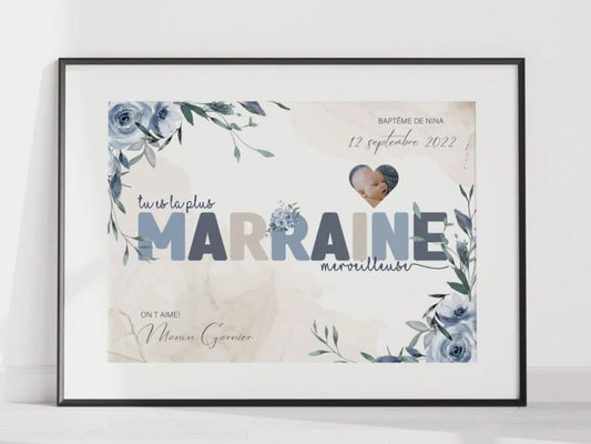 AFFICHE POUR MARRAINE - BAPTÊME THEME BLEU