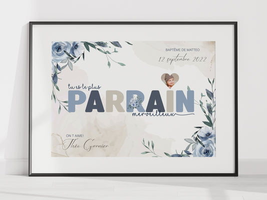 AFFICHE PERSONNALISÉE PARRAIN BAPTÊME BOHÈME