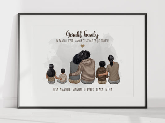 Affiche personnalisée famille de dos - Idée cadeau de Noël à personnaliser